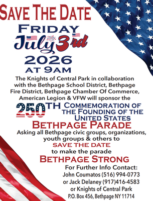 America 250th Birthday Celebration & Bethpage Parade 7/3/2026